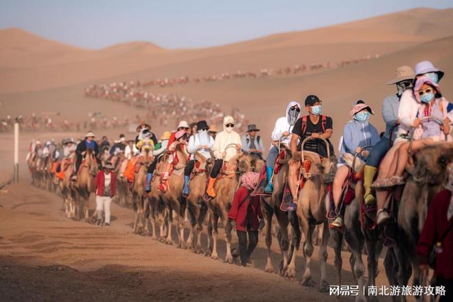 D2天:七彩丝路——丹霞与张掖清晨出发,大巴沿着祁连山脉行驶,婷婷一路讲解丝绸之路的驼铃声与商队故事。抵达丹霞口小镇,仿古建筑的市集里,手艺人现场制作敦煌壁画纹样的陶器,她教我们识别丹霞地貌的层理结构。张掖七彩丹霞景区,赤红、金黄、青灰的岩层如上帝打翻的颜料盒,婷婷指着“七彩屏”说:“这里每一寸岩石都是两亿年的时光沉淀。”晚上赠送的《回道张掖》演出,丝路驼队、胡商舞娘重现历史,灯光与舞美震撼人心。